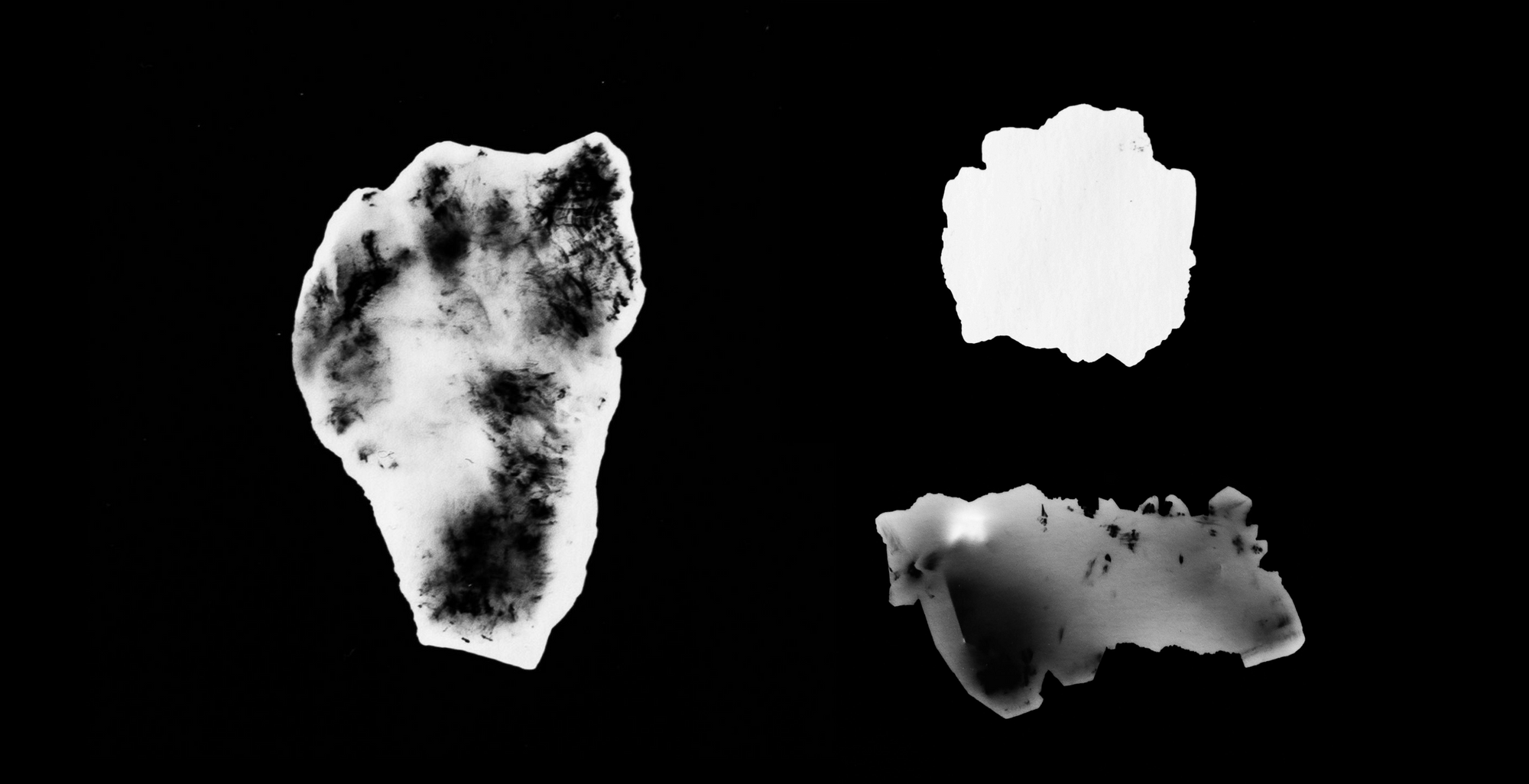 Alguns anos depois, quando estudava na Faculdade de Belas Artes da Universidade de Lisboa, as pedras saíram do meu arquivo e vieram comigo para o laboratório de fotografia, onde criei o projeto experimental "Childhood Islands" (2021) em que realizei fotogramas de alguns elementos da minha coleção, num projeto que pretendia retratar os momentos de introspeção, magia e silêncio da minha infância. Estas pedras, numa imensidão do fundo negro, pareciam ilhas, montanhas ou caminhos em que cada uma revelava contornos de lugares onde eu habitava na minha imaginação. Comecei, então, a reparar na alta definição que o registo analógico em papel de fibra revelava dos contornos destas pedras. Cada um apresentava desenhos idiossincráticos que me faziam vislumbrar novos mundos, revelando micro geografias, pequenos recortes montanhosos, um “zoom” fractal. Nesta altura comecei a questionar-me se esta informação geológico-visual poderia ser uma representação em pequena-escala de uma macropaisagem: do lugar de origem destas pedras. Logo a seguir, instantaneamente, a intuição: “posso escutar estas linhas?" "Como posso fazer para ouvir as pedras?" "A que soam?" Com estas perguntas se inicia a Tese que me proponho apresentar.