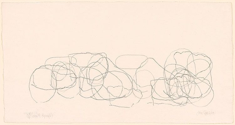 Já em 1984, John Cage, na sua obra "Where R = Ryoanji" (1984), foi inspirado pelo jardim de pedras do Templo "Zen" de Ryoanji, no Japão. Movido pela abstração do espaço e pela serenidade do ambiente, Cage começou a explorar as pedras como elementos de composição. Recorreu ao "I Ching", um método de adivinhação milenar chinês, para determinar o número, a posição e os contornos das pedras nas suas composições visuais. Este processo era como um aleatório condicionado, desenhando várias vezes os contornos das pedras com diferentes pressões de lápis para criar variações tonais.